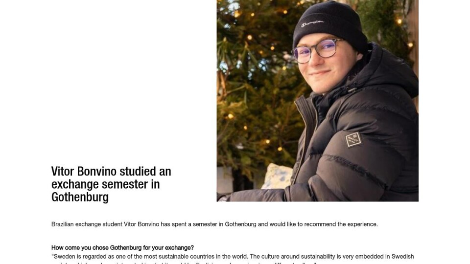 Brazilian exchange student Vitor Bonvino has spent a semester in Gothenburg and would like to recommend the experience.